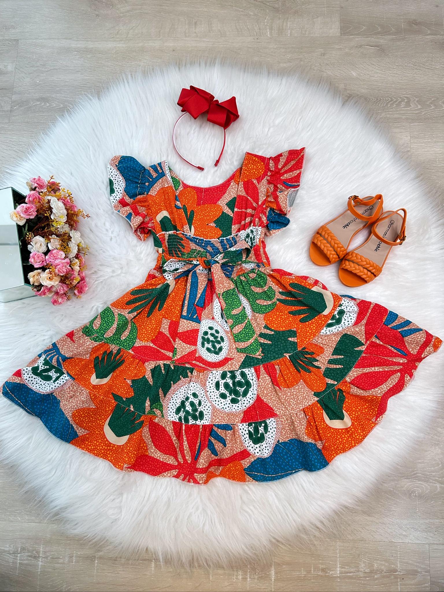 Vestido Infantil Primavera Verão Florido Colorido Luxo
