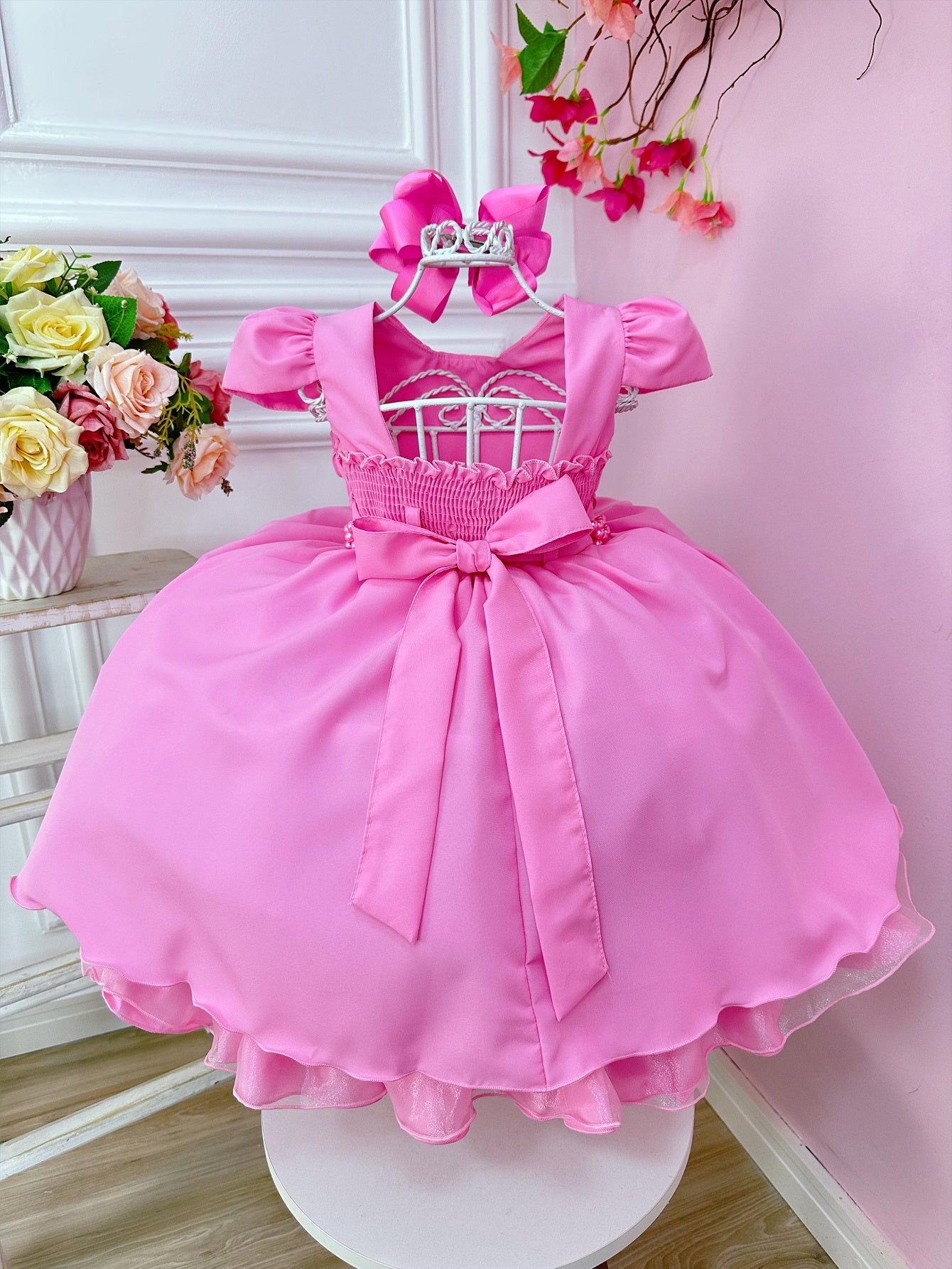 • Vestido Infantil Rosa C/ Cinto de Pérolas Casamento Luxo