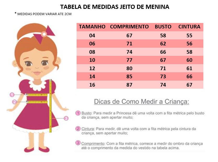 1 - COMPARE AS MEDIDAS DA CRIANÇA COM AS MEDIDAS DA TABELA, NÃO COMPRE PELA IDADE, E SIM PELAS MEDIDAS.