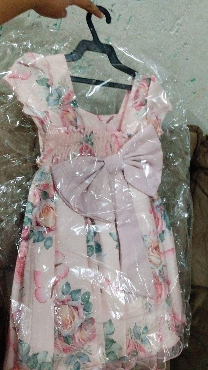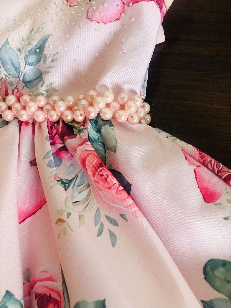 • Vestido Infantil Rosa Jardim das Borboletas Damas Luxo Pérolas