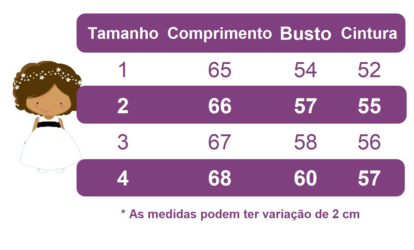 * Laço de cabelo, tiara e acessórios não acompanha o vestido e são vendidos separadamente;