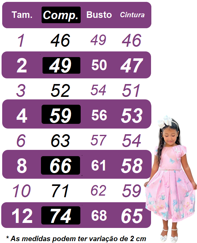 * Compare as medidas da criança com as medidas da tabela que está nas fotos, não compre pela idade, e sim pela tabela de medidas;