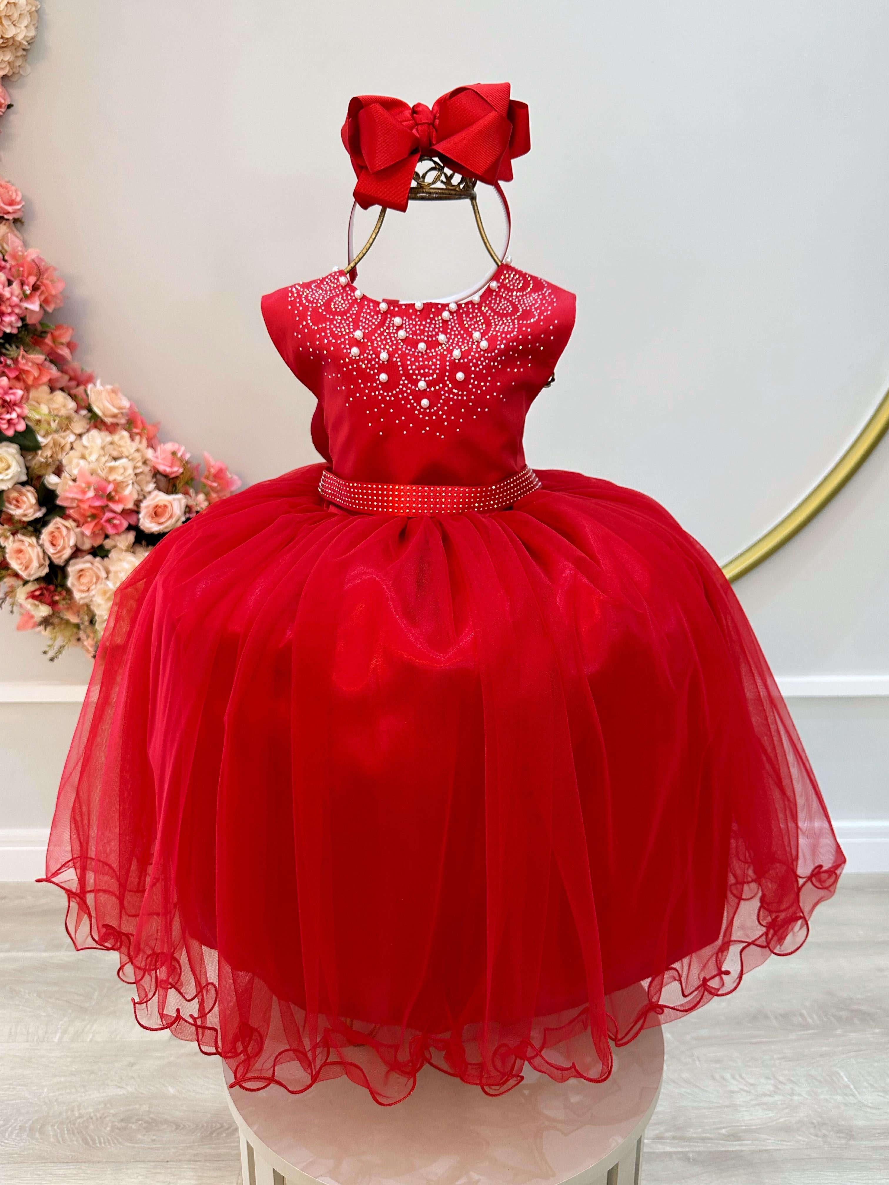 • Vestido Infantil Vermelha Damas Luxo Festas
