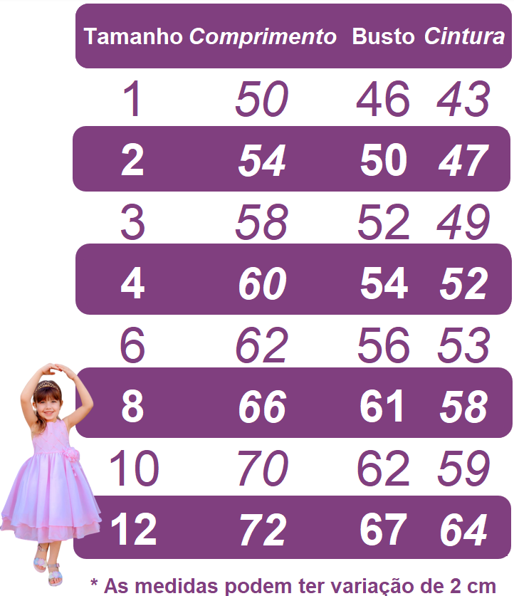 * Laço de cabelo, tiara e acessórios não acompanha o vestido e são vendidos separadamente;