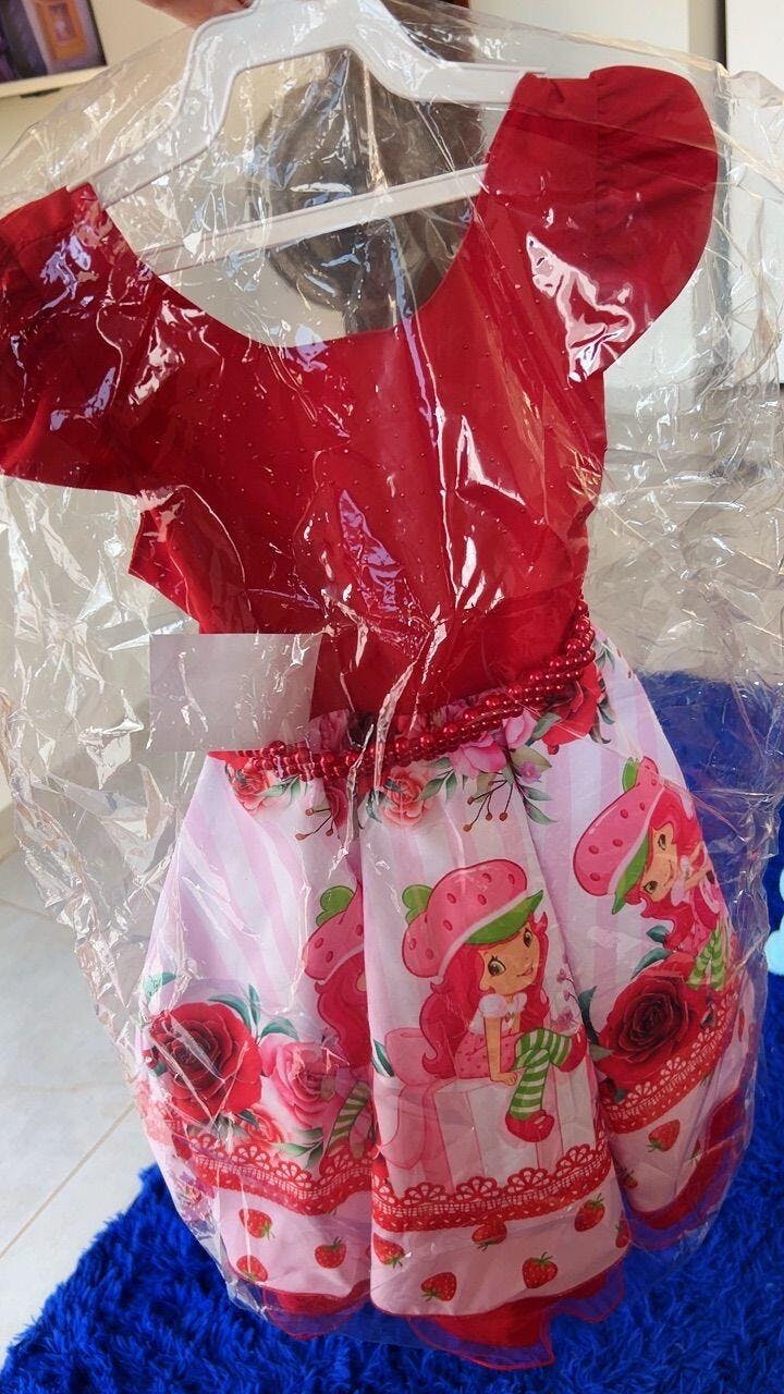 Vestido Infantil Vermelho Moranguinho Festas Luxo