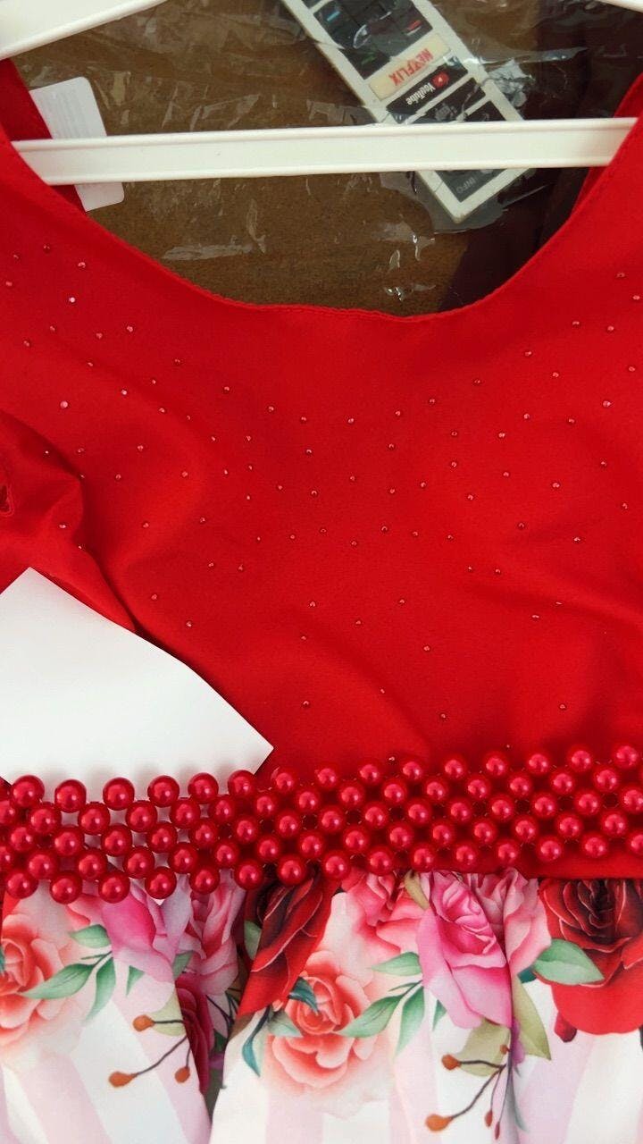 • Vestido Infantil Vermelho Moranguinho Festas Luxo