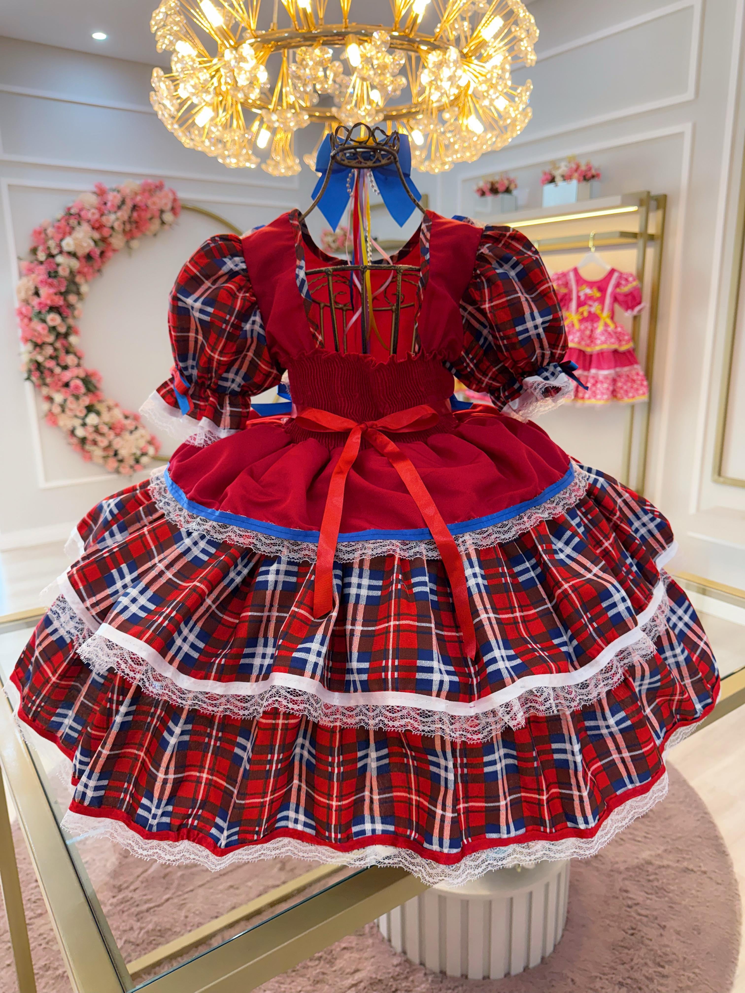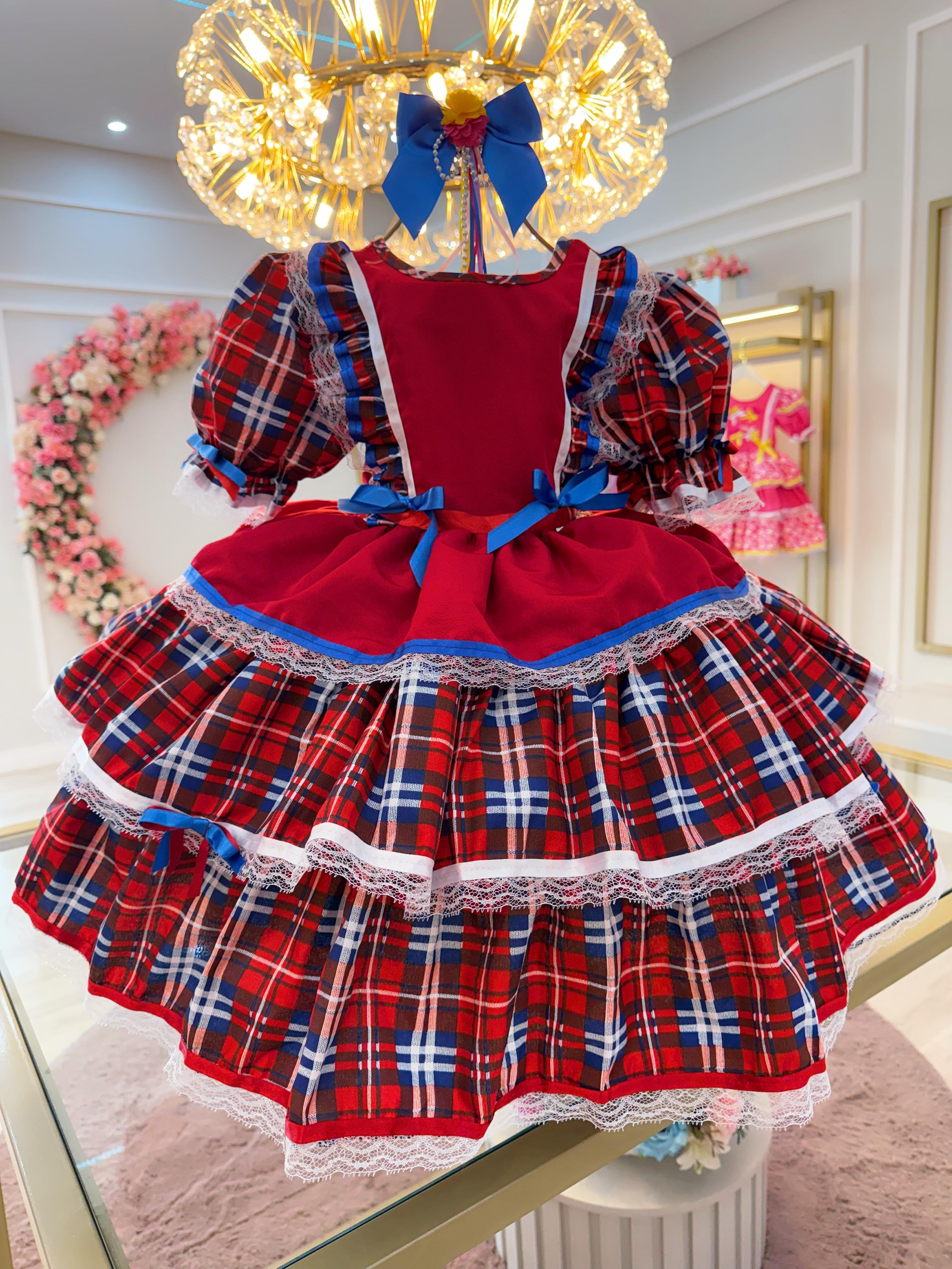 • Vestido Junino Arraiá Festa Vermelho Xadrez Colorido