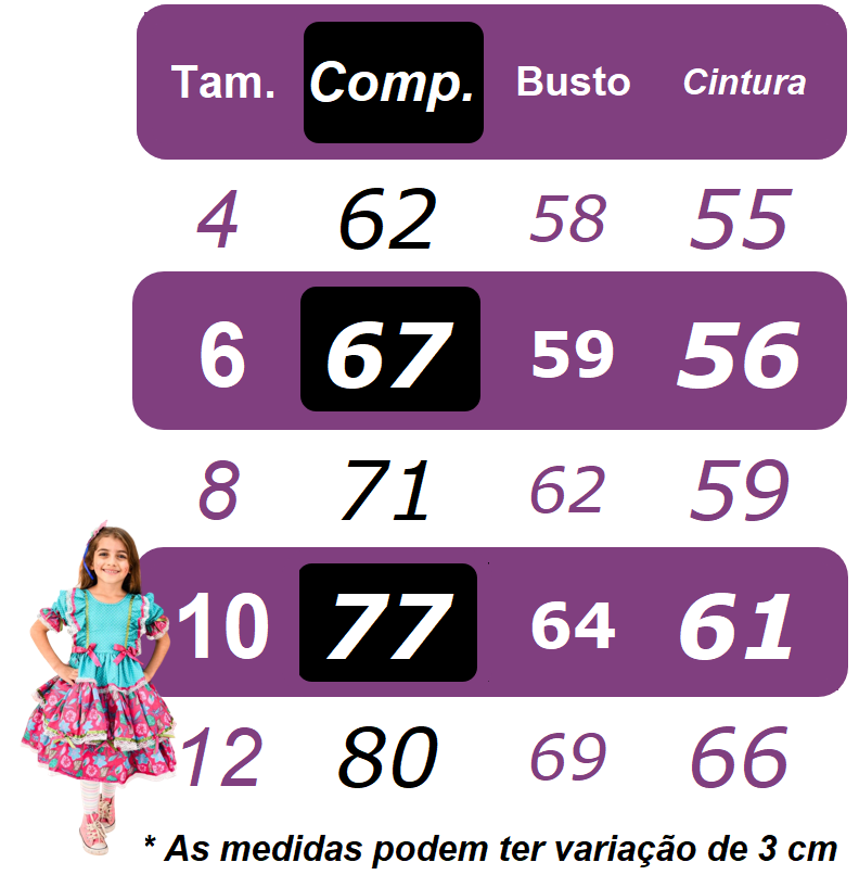 * Compare as medidas da criança com as medidas da tabela que está nas fotos, não compre pela idade, e sim pela tabela de medidas;